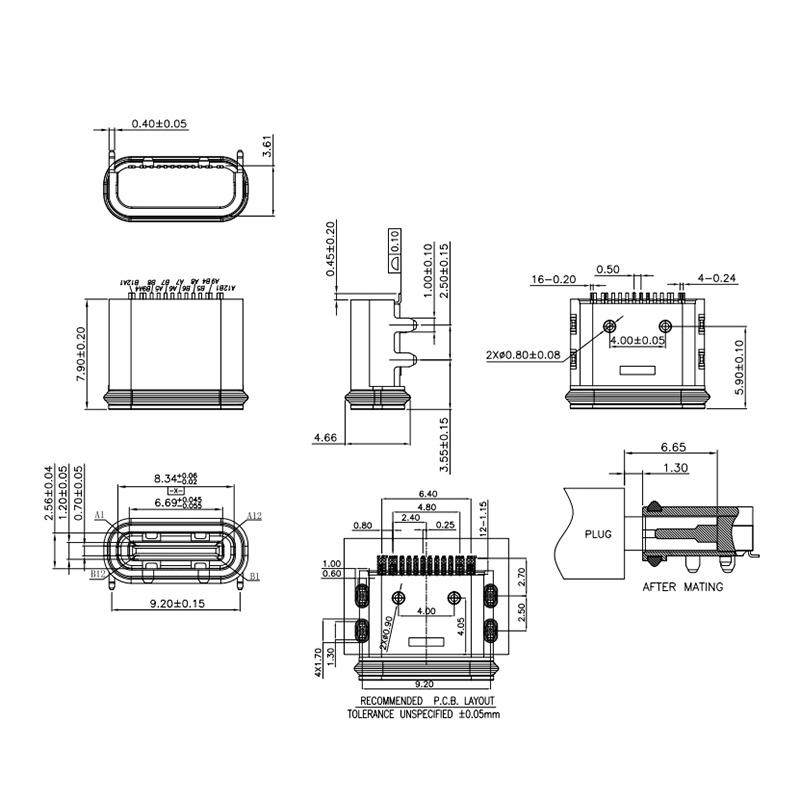 USB Type-C 16Pin SMT on board Housing: 4 pins L-7.90 Waterproof grade IPX7